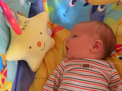 I tried Paxton in his new little playthingy...this morning and he was fascinated...It was fun to watch him so mesmerized...reminds me that we should all find simple pleasures now and again!
